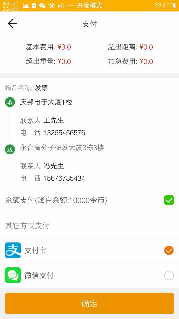 上门取件后校队距离与重量,确定最终金额,并支付订单